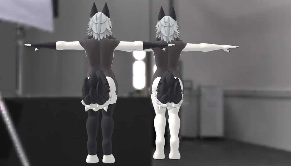 Hellhound time! Here is your always reliable (sometimes), and recognizable Wolf Girl! Comes with two texture options! With or without the arm + leg warmers! Also includes optional Audiolink texture and outfit texture!