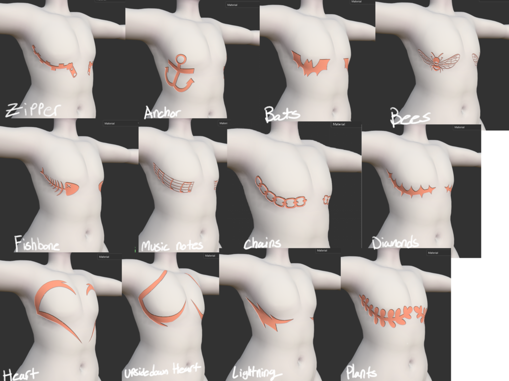Wanna get a little fantastical with your top scars? Look no further! With 20 different designs, this pack offers a variety of options for top scar designs! From bees to bat wings, catch everyone's attention with these wild designs!