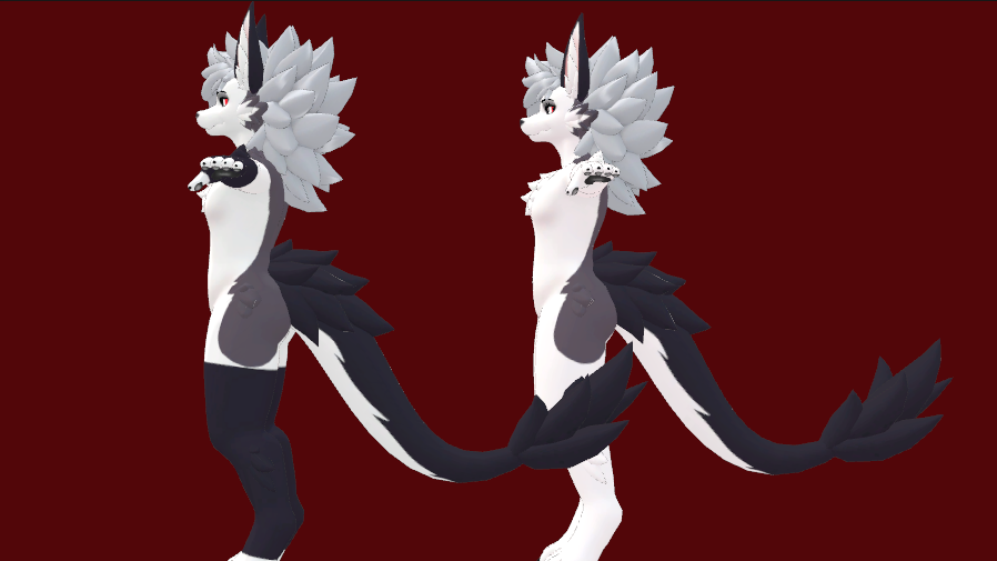 Hellhound time! Ever felt like being an angsty wolf girl but like, a dragon? Here you go! Comes with two texture options! With or without the nose, and with or without the arm + leg warmers! Also includes optional Audiolink texture!